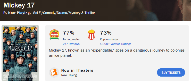 第一点,改编自2022年新出版科幻小说《米奇7号》的《编号17》,在好莱坞的语境中基本算是“原创电影”,在IP为王的市场环境中,本来就很难吸引普通观众;其次,本片被奉俊昊注入了不同于惯常商业电影的风格基因,议题一箩筐,政治讽刺的浓度尤其高,这又在一定程度上提高了观影门槛。有这两大因素客观存在,《编号17》虽然投资巨大,但本就不是一部可以雅俗共赏的全民向商业娱乐片。