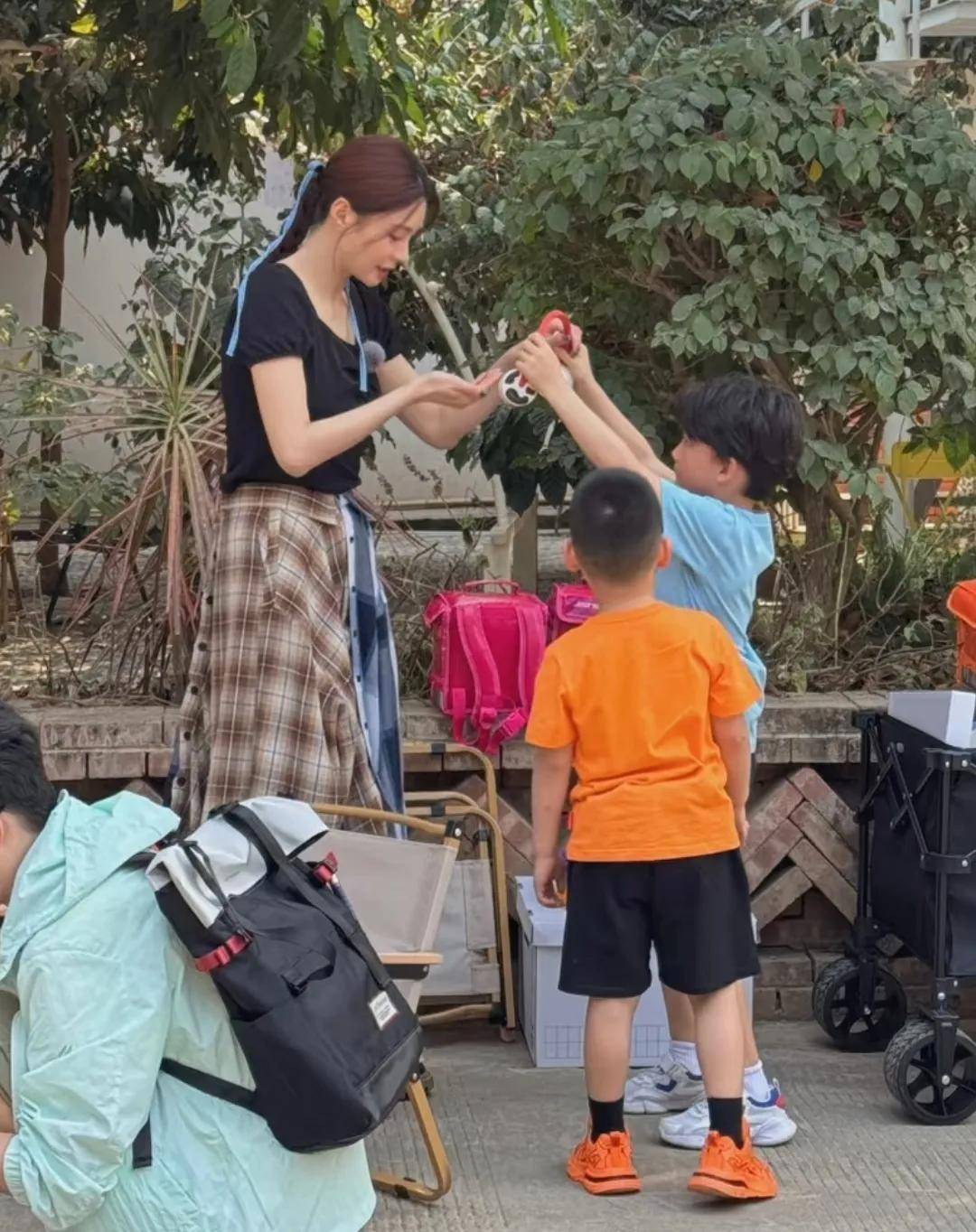 现场曝光的画面里,沈梦辰和海涛一直和刚才合影的小朋友玩得不亦乐乎。海涛看那小男孩的眼神,满是宠溺,眼睛都没离开过,不知道的还真以为他们仨是一家三口呢。这夫妻俩,对小朋友的喜爱之情,简直是溢于言表。