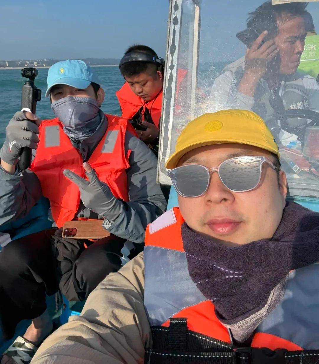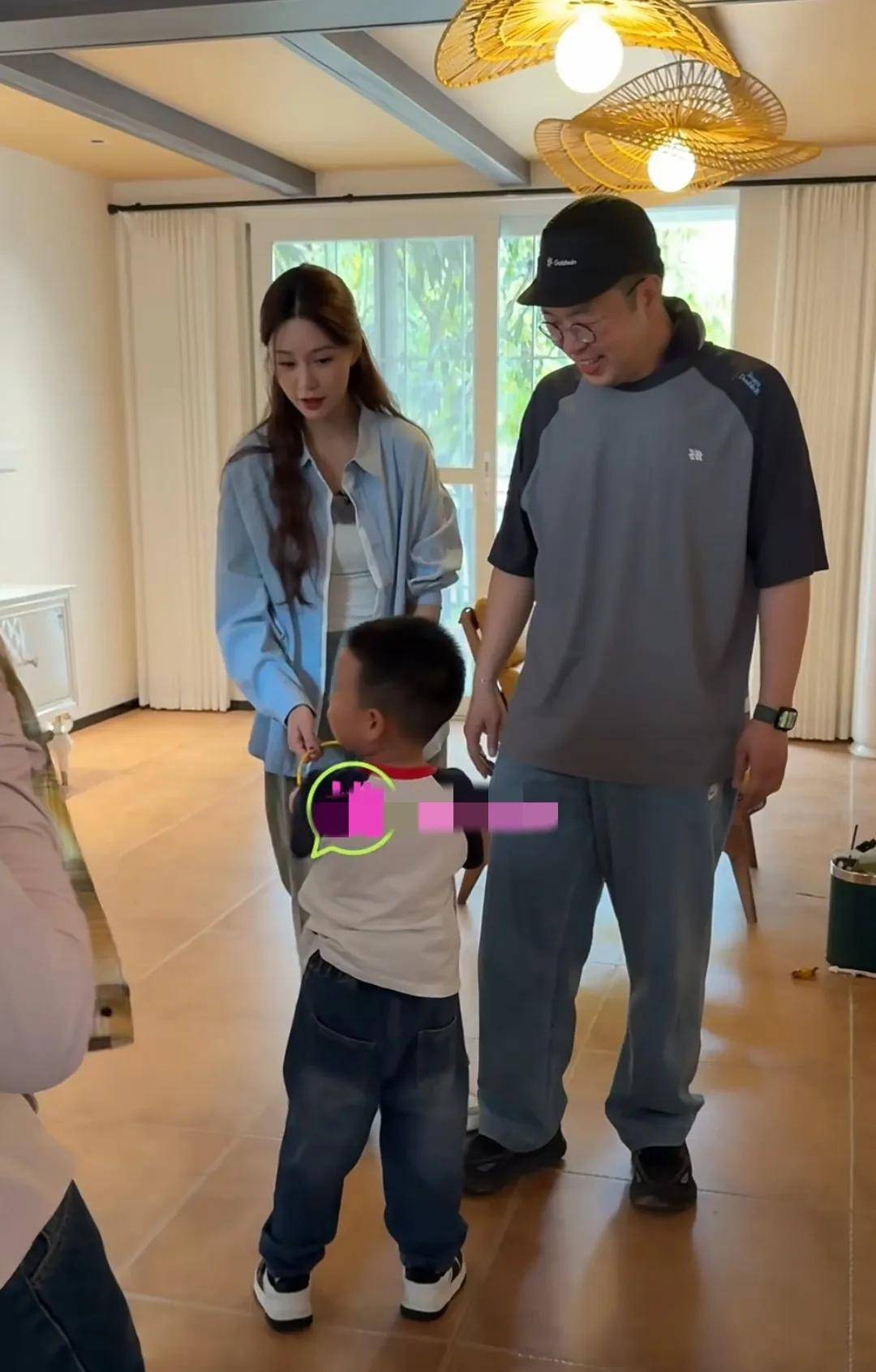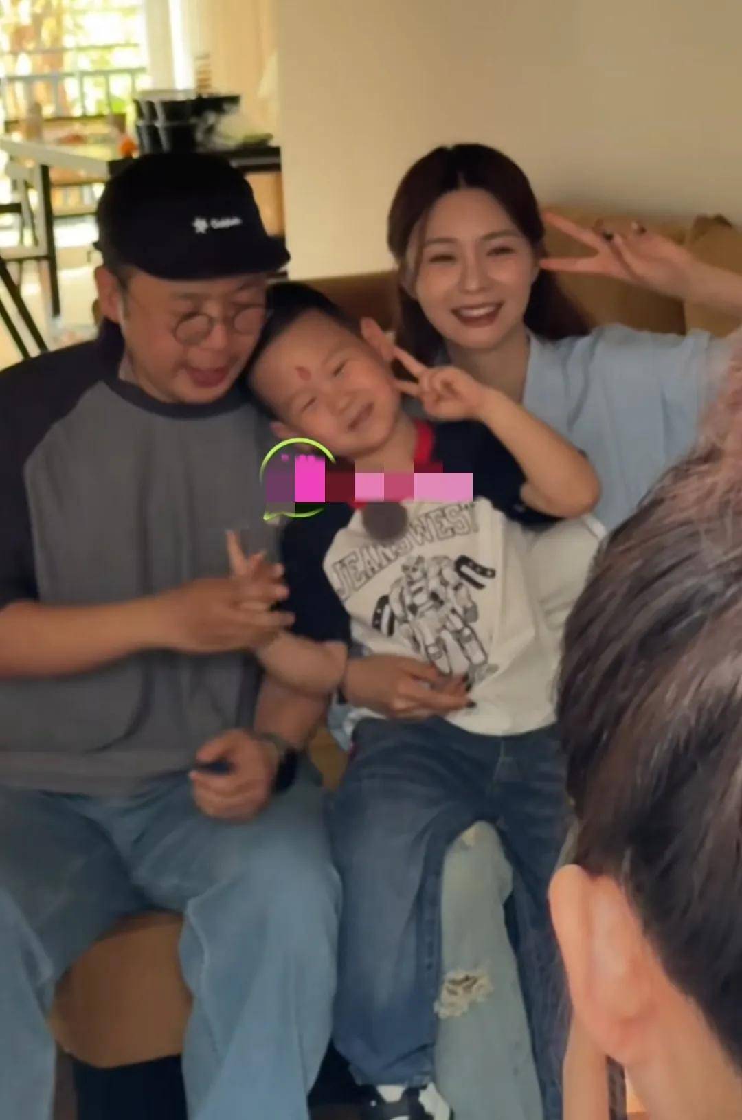 海涛刚从海南回来,晒得黑黝黝的,戴着帽子和眼镜,笑得眼睛都成一条缝了。旁边的小朋友和他长得还挺像,这缘分,真是妙不可言。沈梦辰也是笑得见牙不见眼,夫妻相是越来越明显了,这大概就是所谓的“不是一家人,不进一家门”吧。