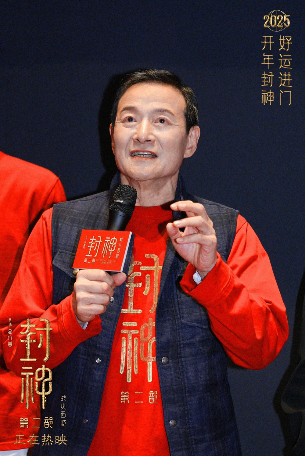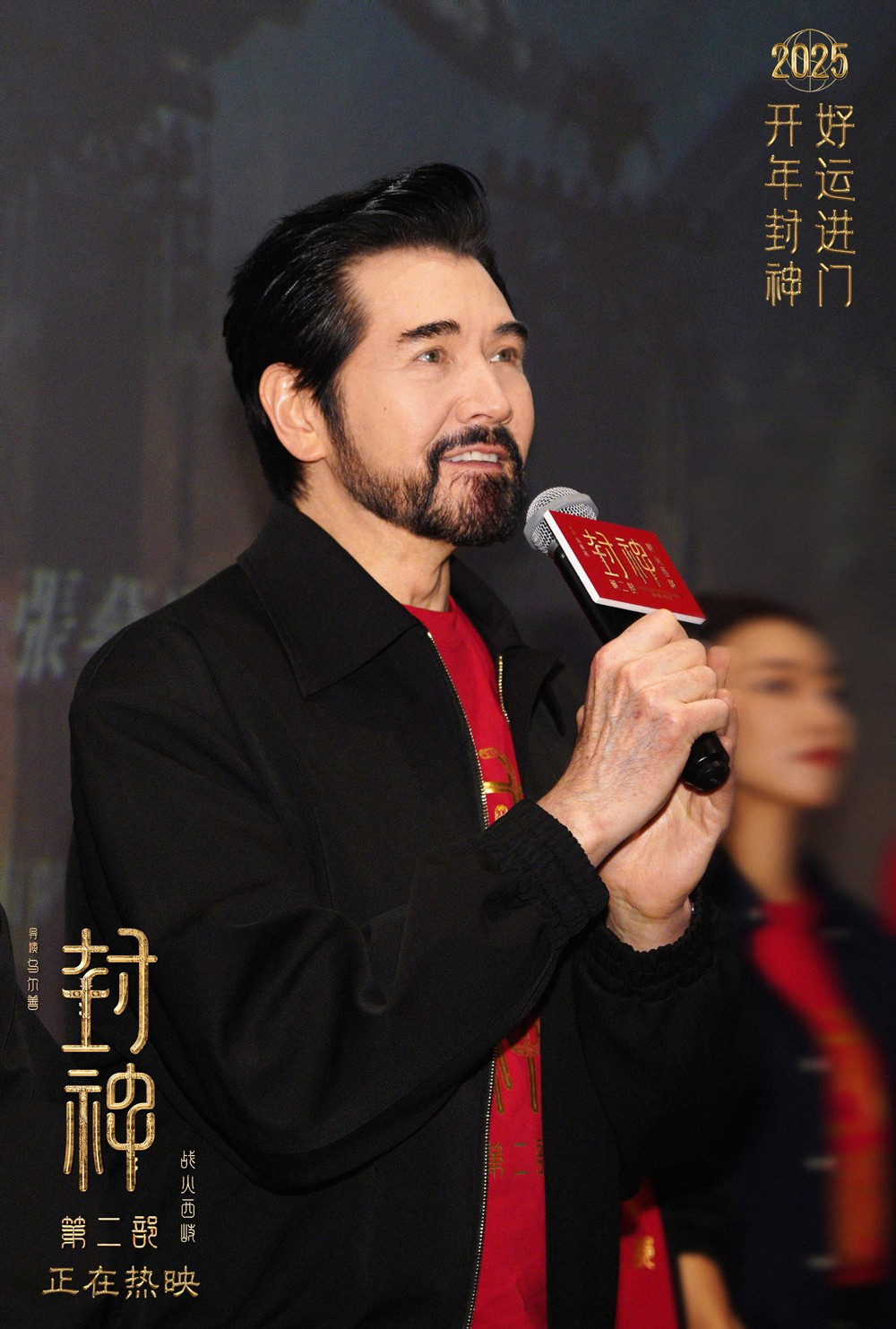 饰演殷寿的费翔也在路演中也收获了满满的感动,他笑称自己多了许多“勇敢的儿子和女儿”,并特别提到一位在路演现场喊他“父王”的2岁“小质子”。费翔表示,在春节这个阖家团圆的节点,看到很多观众陪着父母或带着孩子来到影院,和家人一起看中国神话,感受传统文化的魅力,无疑让他最为感动。演员娜然也分享自己在路演过程当中被观众的热情感染,对观众支持电影中的每一位演员表达了真诚的感谢。首次参加电影路演的吴兴国也分享了自己独特的感受。接演《封神第二部》的殷商太师闻仲,不仅是他十年后首次重返大银幕,更是他与传统文化的一场重逢。作为传统戏曲出身的演员,吴兴国对非遗传承人在路演现场赠送的“闻太师猴加冠”礼物印象尤为深刻。他感慨道:“看到中国传统艺术被更多人传承与弘扬,是一件非常开心的事。”在影片中饰演申公豹的夏雨也有感而发,他表示:“每到一个地方,都能看到观众的热情,尤其是在过年期间,这份支持让人感动。”夏雨还在现场特别感谢观众对《封神第二部》所有角色的喜爱,并强调:“正是有了观众的支持与热爱,我们的创作和表演才更有意义。”