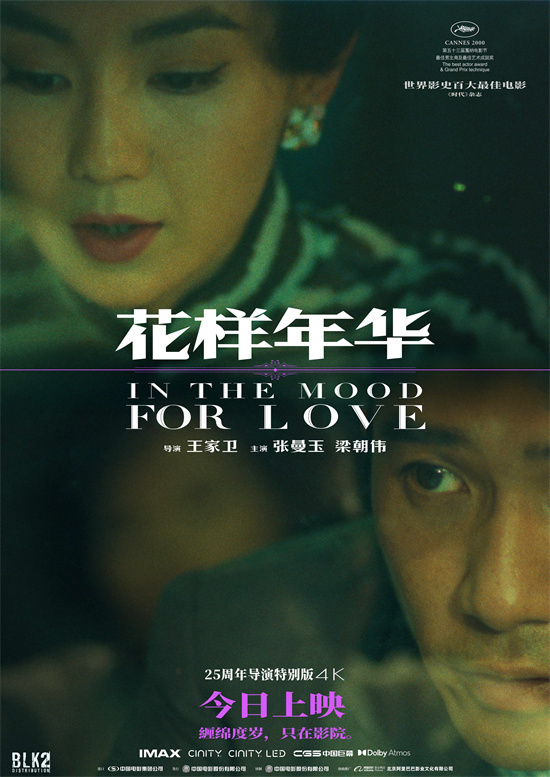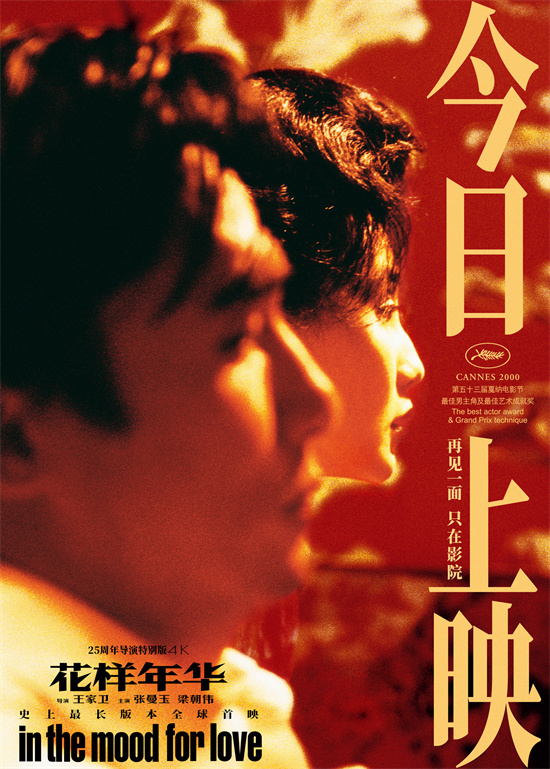 《花样年华》斩获戛纳等多项世界大奖。王家卫的镜头语言、张曼玉的旗袍、梁朝伟的眼神,以及杜可风、李屏宾、张叔平、杜笃之等电影大师的巅峰合作,共同打造了这部世界经典,还有外国影迷表示,《花样年华》是她对东方审美概念的启蒙。此次的导演特别版还增加了全新片段,导演坦言,“这不是复映,而是首映,它让观众有机会看到一个更接近我原始构想的版本”。两位主角跳脱出了60年代,为故事书写了另一种可能。此外,影片还将只在影院放映,这是王家卫导演送给影迷们的一份礼物,他表示,希望通过这种方式让当今的观众能更加体会到影院的仪式感。很多在大银幕看到《花样年华》的影迷都很兴奋,表示看到了更多的细节,周冬雨也分享到,她重温过非常多次《花样年华》,却是第一次在大银幕看,“大银幕能感觉到更多的情感张力”。