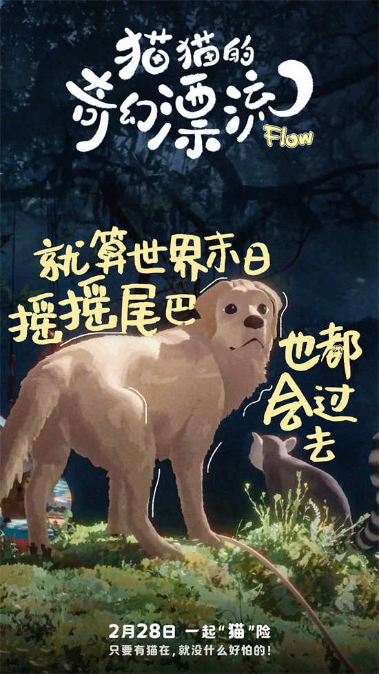 角色海报场景设计暗藏玄机,船上的细节、洪水后的世界等元素,既呼应了“诺亚方舟”的故事主线,又通过细腻笔触烘托出角色的萌态。角色海报不仅展现了电影《猫猫的奇幻漂流》中萌宠天团的多样魅力,暖心话术更是直击人心,他们在一起会发生什么样的冒险故事?答案将由观众走进电影院亲自揭晓。