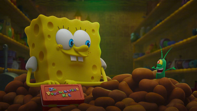 影片讲述了当痞老板称霸世界的计划受挫后,他的世界发生了翻天覆地的变化。防水电脑凯伦作为伙伴和妻子,继续和痞老板打理海之霸餐厅,蟹老板作为永不消停的对家依旧不消停,比基尼海滩将精彩不停!