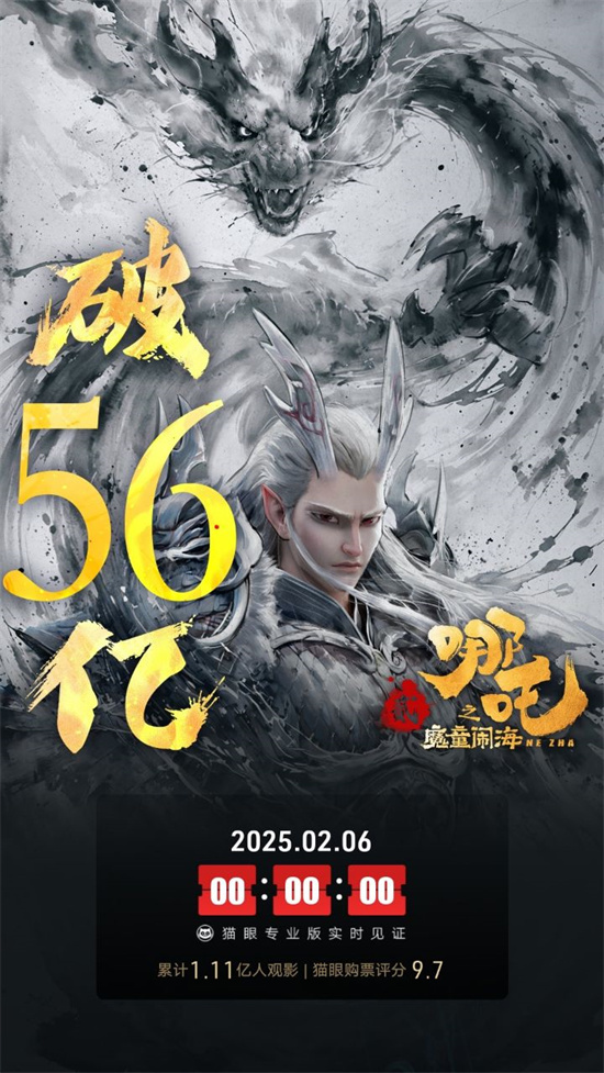 《哪吒之魔童闹海》再创纪录!2月5日,在春节假期结束后首个工作日,电影轻松收获6.48亿元单日票房,成为中国影史上第一部在工作日砍下6亿票房的影片,累计票房超56亿元。而电影预测总票房也一路走高,猫眼预测票房超94亿,有望挑战电影《小黄人大眼萌》,进入动画电影全球票房排行榜前五名。
