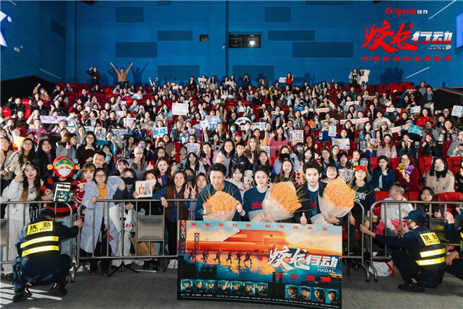 当天,一位“50后”阿姨自称从《红海行动》追到《蛟龙行动》,鼓励主创:“喜欢林超贤的作品,你们辛苦了给我们带来这么好看的片,继续加油。你们拍的不仅是电影,更是我们这代人的强国梦!”