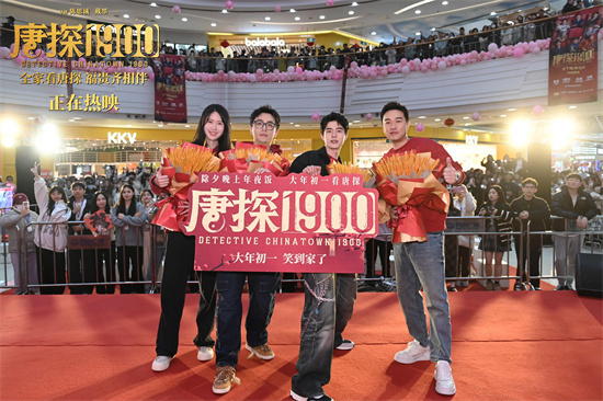 大年初三,电影《唐探1900》导演戴墨,演员刘昊然、白客,总制片人范霞在温州路演现场与观众展开交流互动,张新成也以线上形式参与其中,欢乐复刻了电影里的多个名场面。