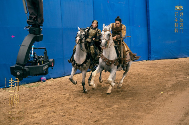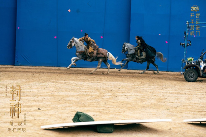 影片中,观众将看到更多动作和战争场面,见证一场实力悬殊的交锋中人类将如何战胜法术。随着“西岐保卫战”打响,金戈碰撞,铁骑奔腾,将沙场上紧张激烈的厮杀氛围展现得淋漓尽致,更有“马上起扬”“镫里藏身”“后仰铁板桥”等专业马术动作,以及“左右开弓”“三箭连射”等专业骑射动作在大银幕接连上演。姬发与邓婵玉的双马打戏尤其惊险刺激,两匹马在高速奔跑间的最近距离仅不到半米。为了在这分寸之间呈现出行云流水的高难马上动作,两位演员在“封神演艺训练营”长达半年的训练以及后续一年多的拍摄的空余时间里,历经了高强度的动作与马术训练。对于最终效果,导演乌尔善表示:“演员自身的能力让我能设计出高难的镜头,画面能表现他们的训练效果,也能凸显真实的神话感。”期待观众新年走进影院,一同“检验”封神演艺训练营的训练成果。
