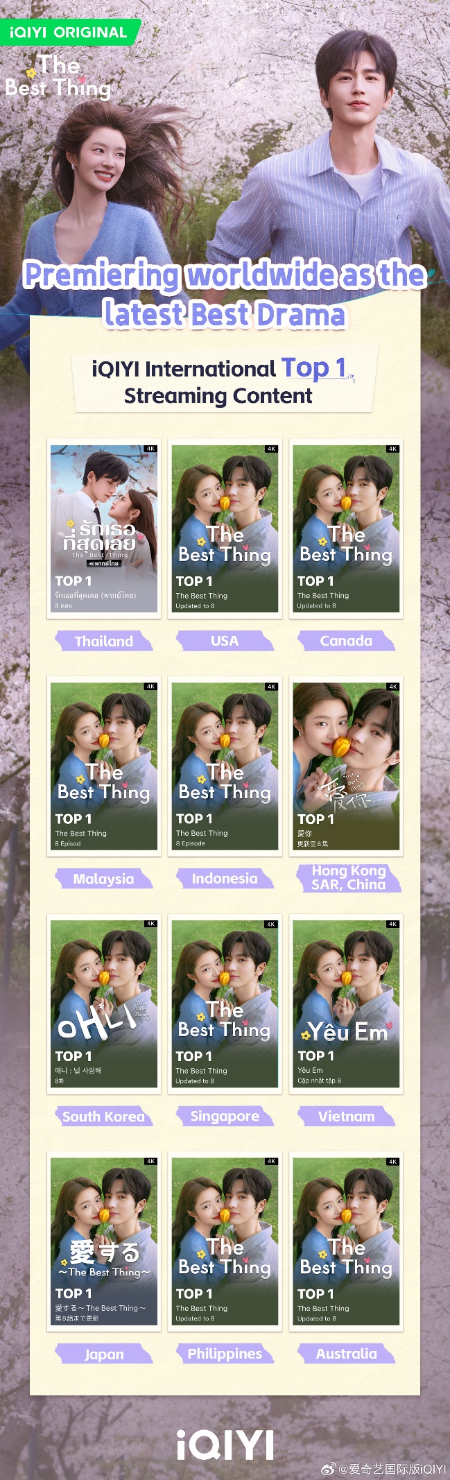 《爱你》通过温润中医何苏叶(张凌赫 饰)与失眠酒店经理沈惜凡(徐若晗 饰)的"药香治愈系爱情",打造出极具东方韵味的浪漫范本,在海外收获了极高的关注度和良好口碑。据V-Pulse海外热度榜显示,截至3月3日,《爱你》冲上华语电视剧印尼热度排行榜TOP3,主演张凌赫也因该剧在海外人气飙升,热度跻身华语艺人国际排行榜TOP7。