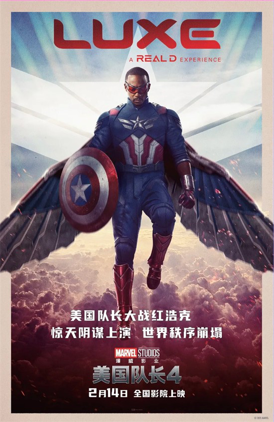 同时,开年首部超级英雄大片《美国队长4》也即将在2月14日献映。在《复仇者联盟4》之后,曾经的“猎鹰”山姆·威尔逊正式接过美国队长的盾牌,成为新一任美国队长。他将迎接重重挑战,“硬刚”由美国总统变身的红浩克,揭露一场波及全世界的惊天阴谋,戴RealD 3D眼镜,身临其境直面危机硬核救世!