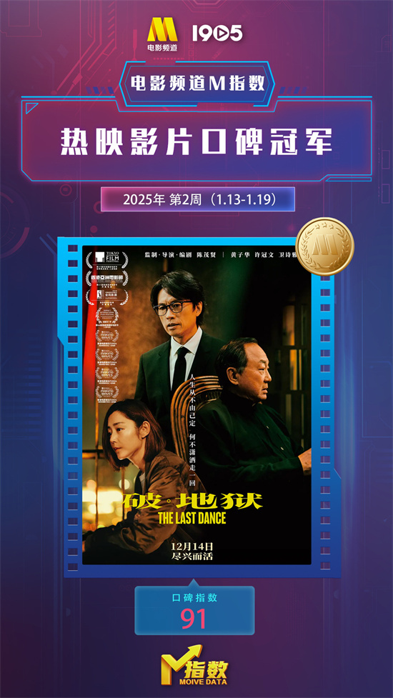 “电影频道M指数”热映影片口碑榜前6位依次为: