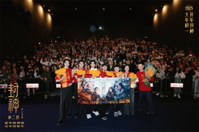 映前见面会现场,TVB主持人梁采贻惊喜现身,代表中国香港的“荣誉出品人”为《封神第二部》“打call”。制片人罗珊珊也分享到《封神第二部》将会在大年初一于北美、澳洲、法国、意大利等全球多个国家和地区同步上映。