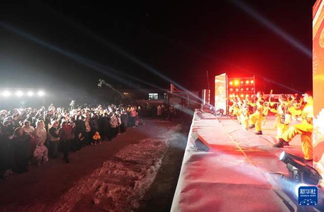 在辽宁省朝阳市朝阳县北四家子乡唐杖子村,演员在“村晚”上表演(2月2日摄)。