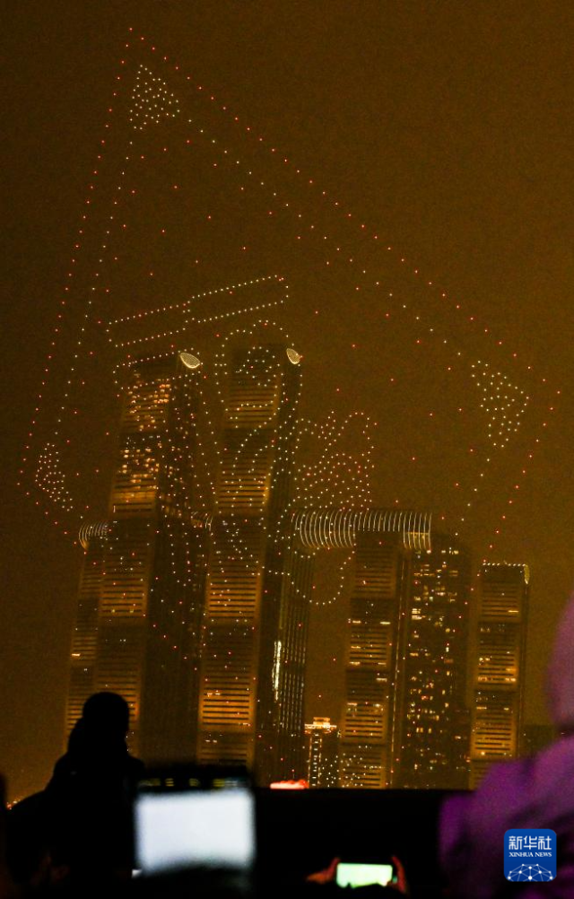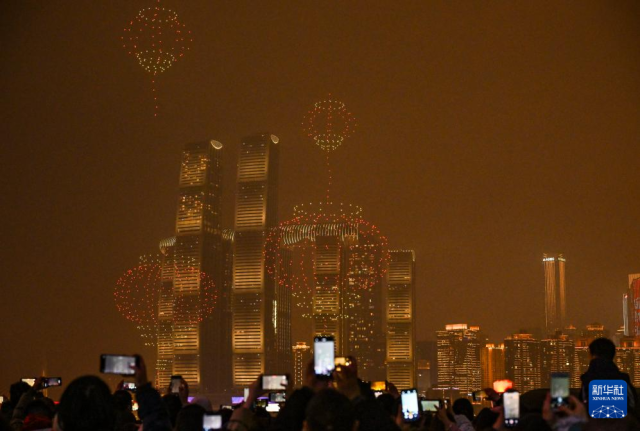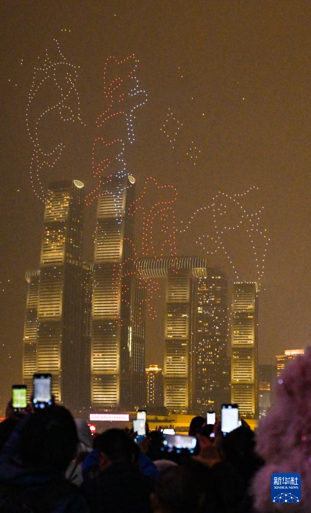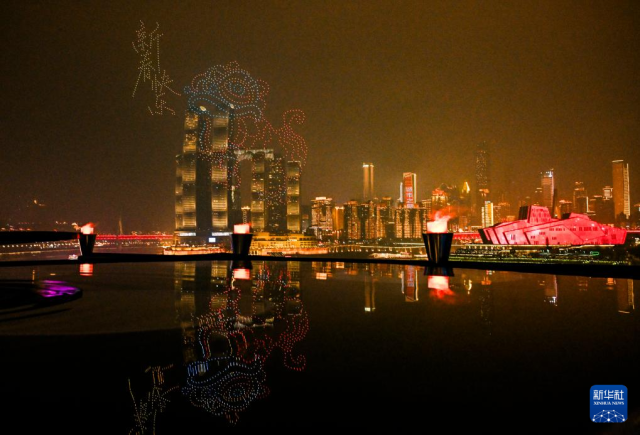春节期间,多场无人机表演在重庆朝天门长江、嘉陵江两江交汇处精彩上演,为市民和游客带来视觉盛宴。