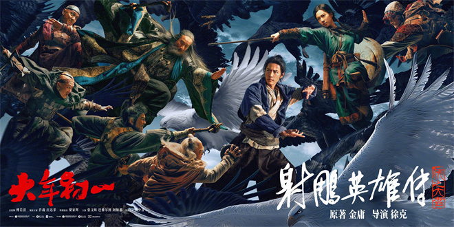 近日,电影《射雕英雄传:侠之大者》发布新海报。海报中,郭靖与黄蓉以少敌众,共抗“西毒”欧阳锋及党羽,众人身怀绝技,各出奇招。