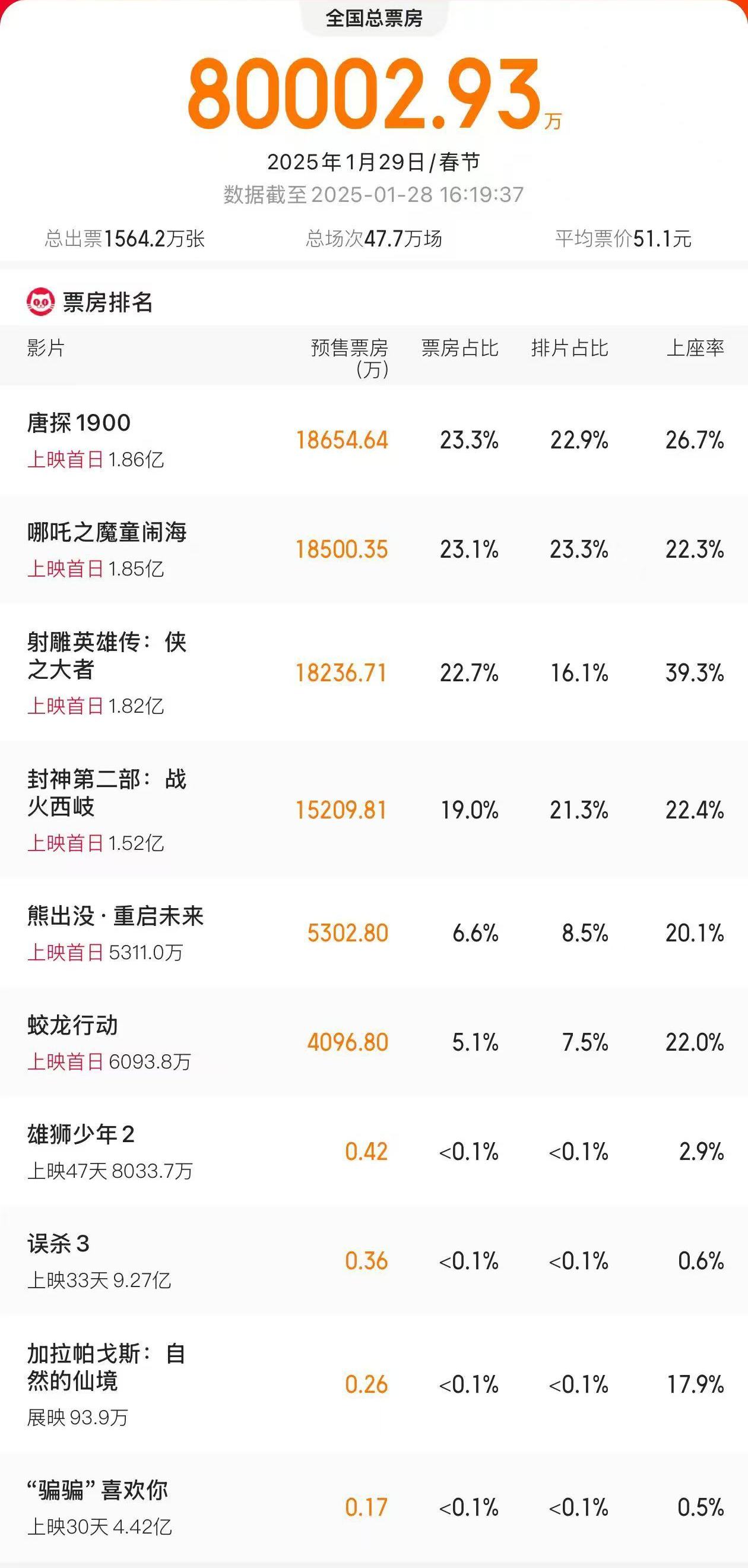 2025年大年初一预售票房破8亿
