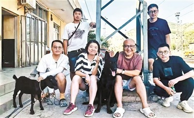 导演刘雪松(前排右二)与剧组人员在《驻站》拍摄现场