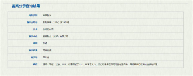 1月3日,国家电影局发布关于2024年12月上全国电影剧本(梗概)备案、立项公示的通知。由张钰(《杀死紫罗兰》)担任编剧的电影《灰烬的剖面》备案立项,该片由张律负责监制。