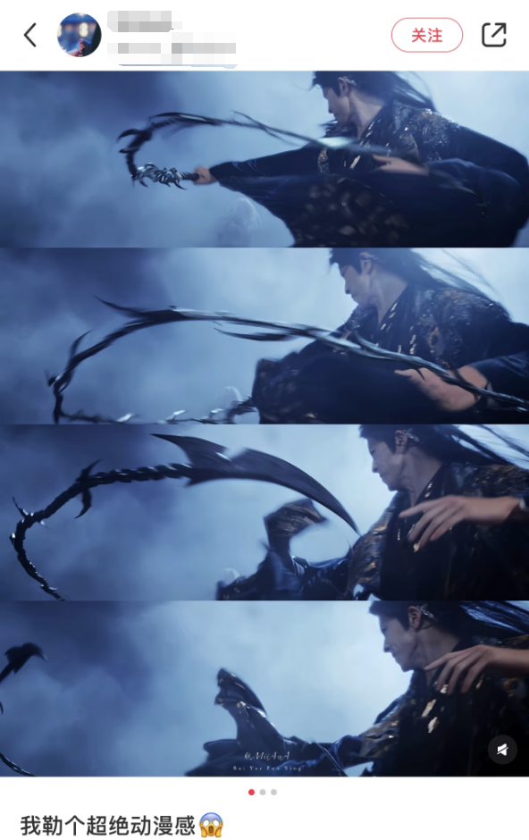 剧中他的打戏非常漂亮,身形遒劲,甩鞭霸道。白发狐妖的造型,也撑住了颜值的考验。