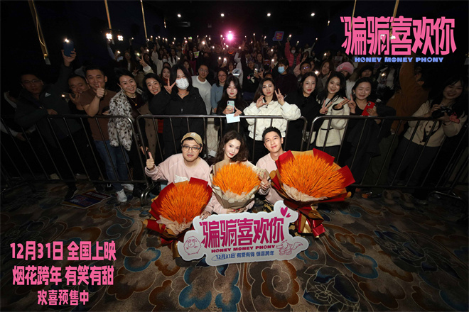 除了观众带来的惊喜外,主创们也是有备而来,“晴晖得已”CP特意准备了糖果,“撒糖”送出幸运和甜蜜。当日电影还发布了主题曲《爱情的骗子我问你2025》MV,魔性的旋律和舞蹈迅速入侵大脑,当观影结束响起这首歌时,金晨和孙阳直接进行舞蹈教学,“公虾米”让全场上头。