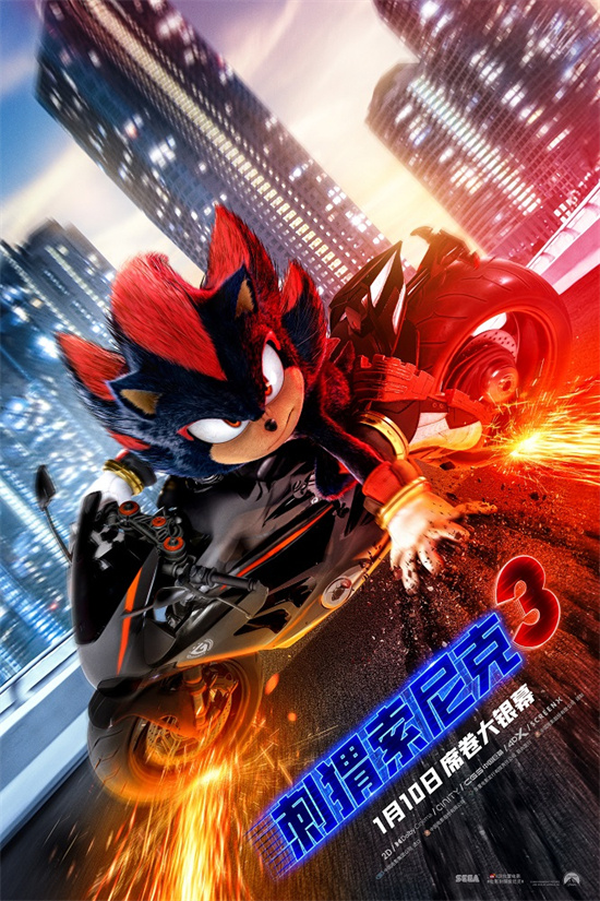 影片同时发布“东京漂移”海报,夏特以身骑摩托的炫酷造型闪现东京街头,强劲有力的手与地面摩擦出四道深深的漂移痕迹,黑红造型与那坚定的眼神都彰显了夏特这一角色带来的超绝力量感与强大气场。影片此次还将在东京街头上演惊险刺激的极速狂飙,由音速小子索尼克在车流中穿梭追逐骑着摩托的夏特,全程高能冲击力十足,特效升级打斗丝滑流畅,堪称“刺猬版的速度与激情”。