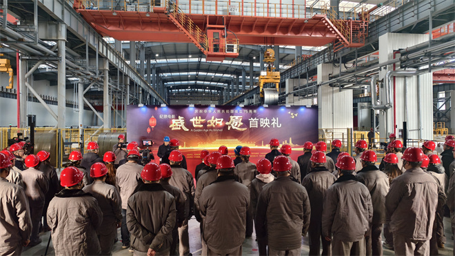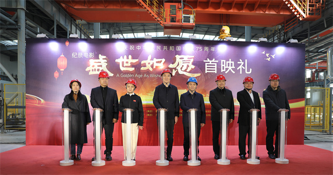 12月16日下午,纪录电影《盛世如愿》首映礼暨电影“进工厂、下乡村、走社区、进校园”巡展放映首场活动在河北唐山河钢集团唐钢公司2030生产现场举办。