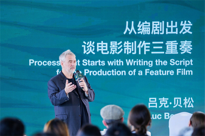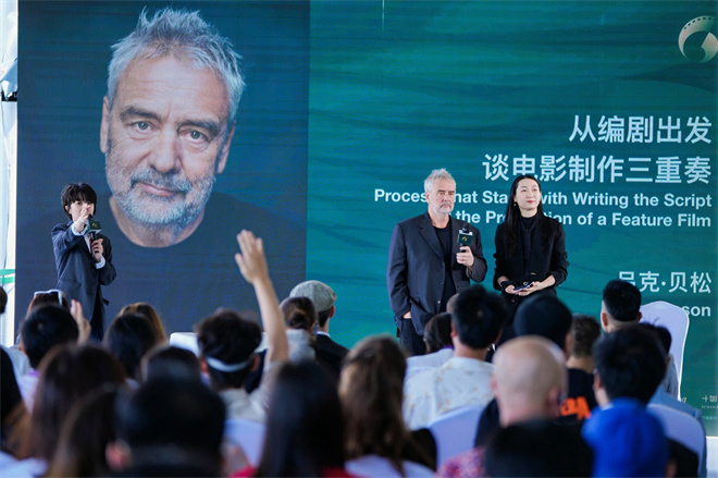 谈起同时作为编剧、导演、制片人三种身份,如何完成“电影制作三重奏”?吕克·贝松表示,他第一个真正的工作是编剧,15岁开始就买纸和笔不停写作,写了几千页太糟糕,就丢到垃圾桶重新开始。他说写《第五元素》写了400页,不好扔掉,又写了400页,不好扔掉,最后写200页留下了。当导演是在编剧之后,而当制片人时他要当好组织者,说服他人来投资,并且控制好预算,“我担任过100多部电影的制片人,只有一次超出预算”。