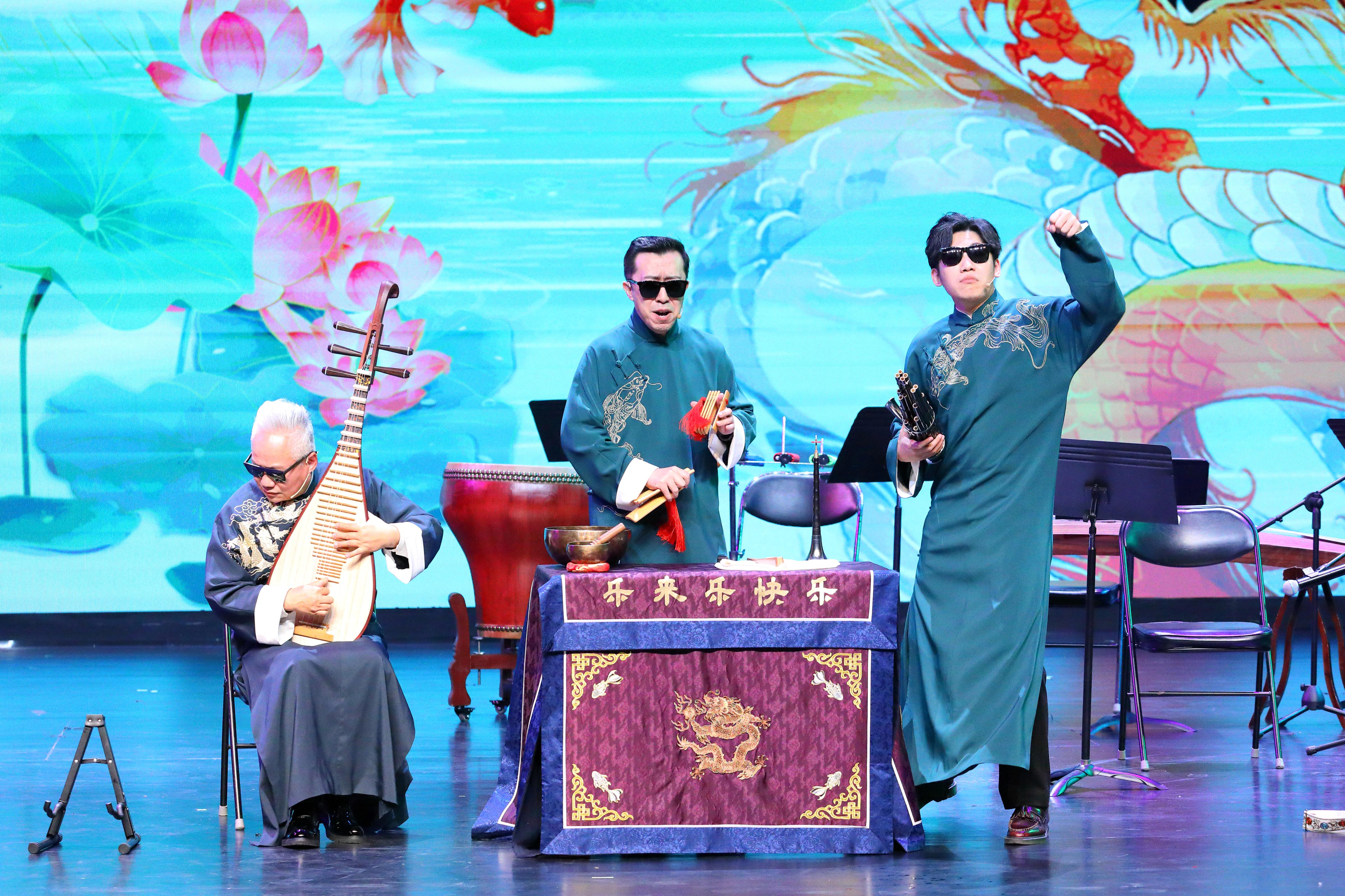 更可贵的是,《声乐齐鸣》从头到尾都有完整的剧情贯穿,讲述的是一个民乐团的领队找“甲方”谈合作的经历。全场演出有开篇、有主体节目、有串场、有结尾,引出的一个个特色鲜明的表演,就连串场环节都精心设计,前后关联,演员们风趣的表演逗得观众哈哈大笑。乐队也不再是只伴奏的“小透明”,他们更多融入剧情,虽然乐手们的舞台表演还有些青涩,但在方锦龙的带领下,他们也尝试在演奏的同时进行情景式表演,使整场演出风格圆融统一。