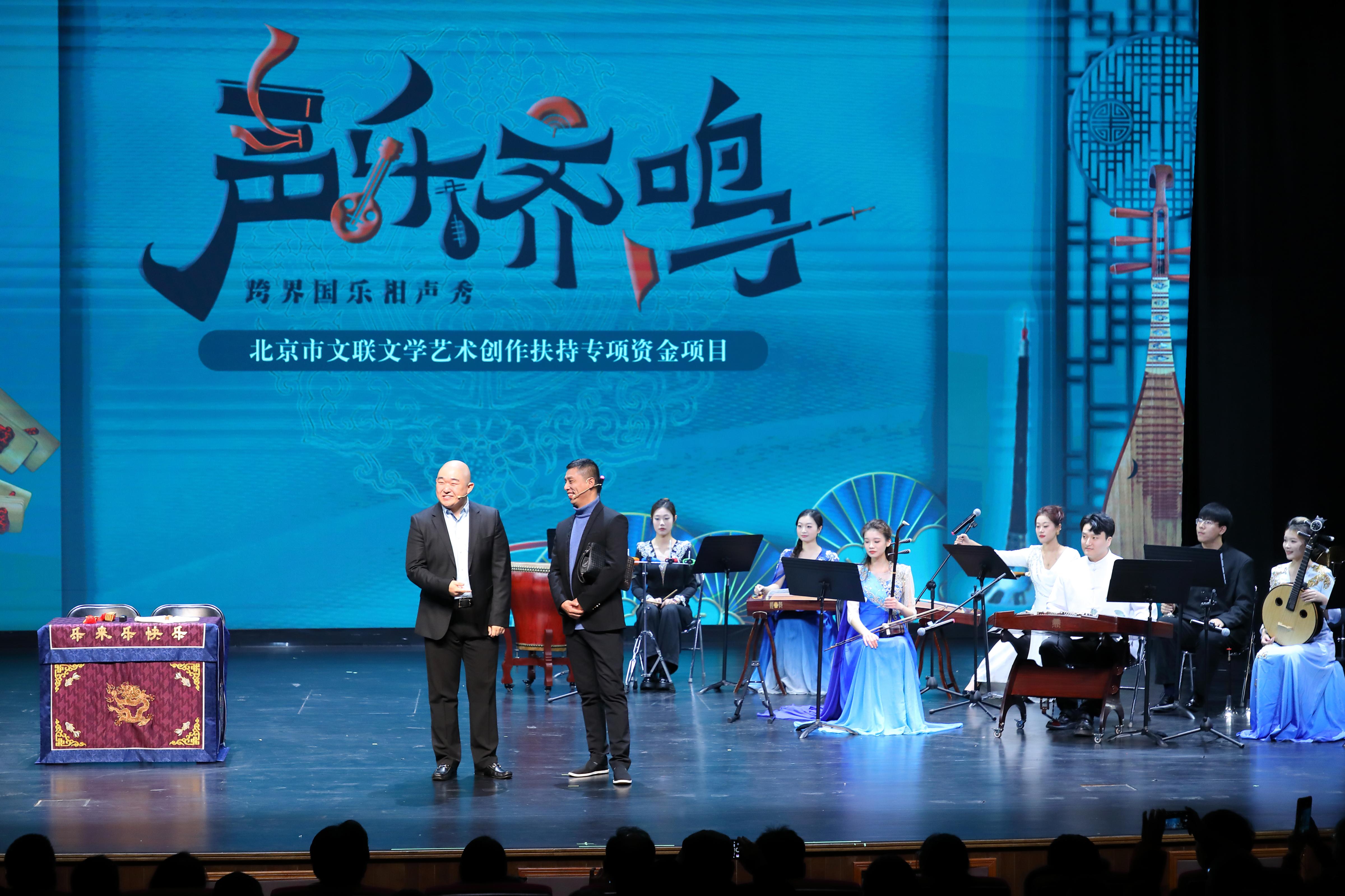 弹着唱着抖着包袱,笑着闹着传递国乐文化,12月13日,2024年北京市文联文学艺术创作扶持专项资金项目——跨界国乐相声秀《声乐齐鸣》在老舍剧场首演,相声演出、民乐演奏、艺术普及融合在一台节目中,为相声与国乐的跨界尝试树立了一个样板。