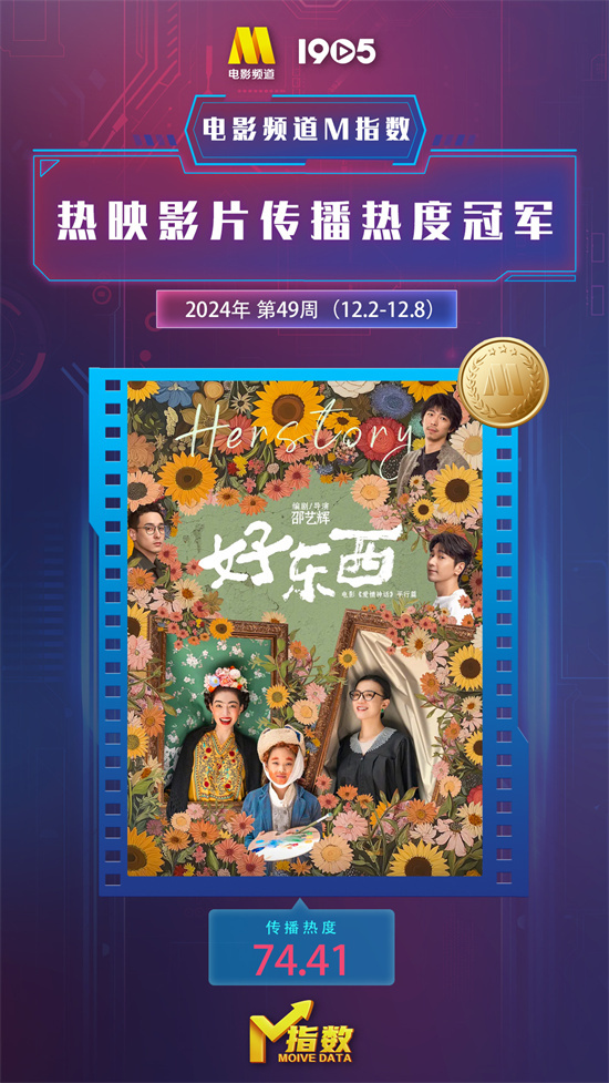“电影频道M指数”2024年第49周结果新鲜发布。