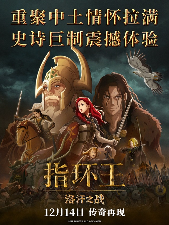《指环王:洛汗之战》由华纳兄弟影片公司出品,12月14日全国上映。影片正在火热预售中,岁末压轴巨制荣耀登场,邀你重返中土世界!