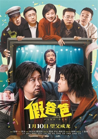 “望父成龙”定档海报中,电视机里的贾冰动情演唱,“望父成龙”的尹正手拿钱币搂着贾冰坐在电视机前,亲密的动作和嗔怒的表情,电视机上倪虹洁、徐峥、王迅、潘斌龙、于洋表情各异快乐围观,影片以喜剧的形式讲述了荒诞搞笑的假父子和别扭温情的真父子的故事,希望带领观众一起卸下疲惫、笑掉烦恼,欢乐解压笑迎新年。文/本报记者 肖扬