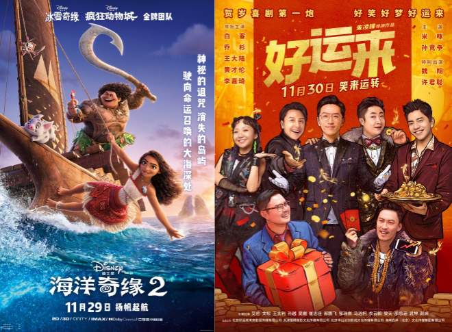 此外,电影《海洋奇缘2》《好运来》分别以5387.7万元和4117.9万元票房成绩分列贺岁档票房榜第四、第五名。
