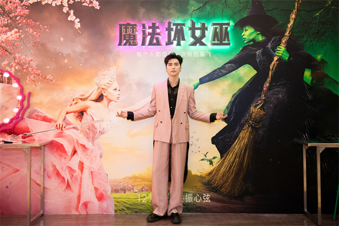 将魔法照进现实,《魔法坏女巫》中国首映以多彩的置景搭建复刻了影片中的神奇国度。穿过大门进入现场,各色鲜花随处蔓延盛开,童话气息扑面而来。粉色与绿色的“对对碰”之下,现场被两股色彩魔力所包围。跟随黄砖之路指引,终点是分别属于艾芙芭与格琳达的梳妆台,其背后隐藏着各自的魔法扫帚和魔杖。首映现场,黄龄、阿云嘎、刘柏辛也相继亮相,增添星光。