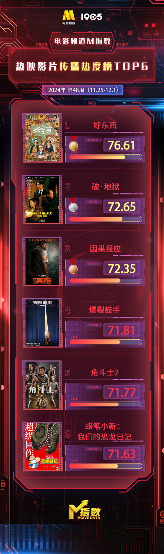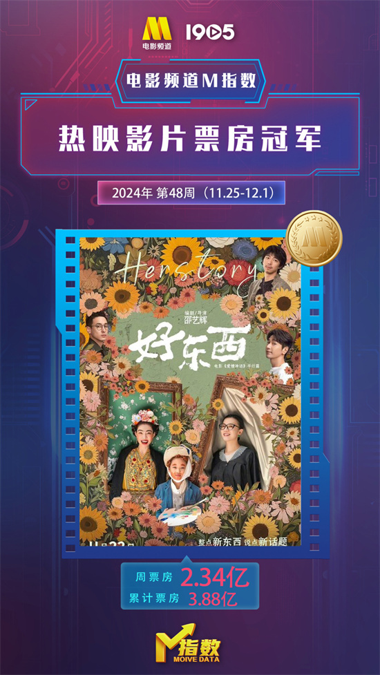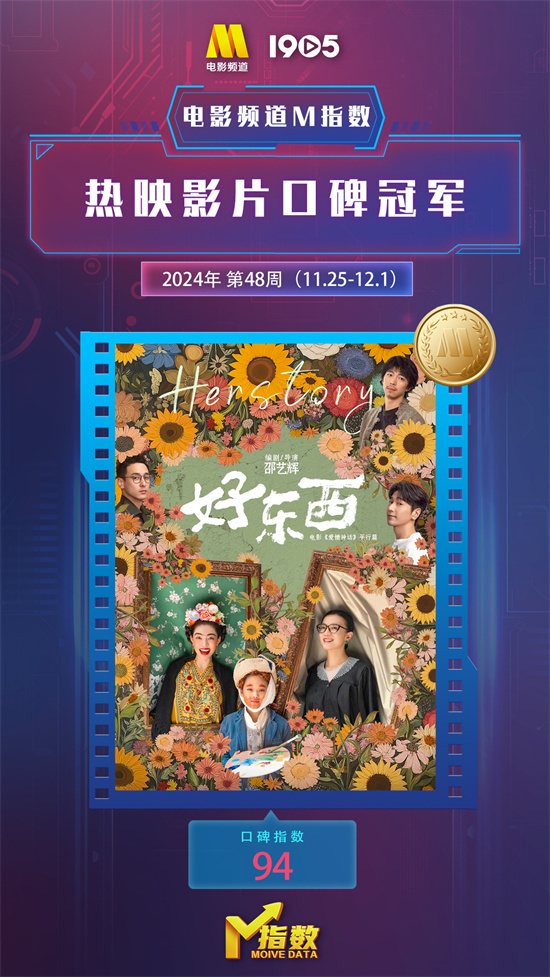 “电影频道M指数”2024年第48周结果新鲜发布。