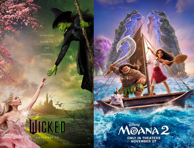 在该档期内,电影《海洋奇缘2》位居2024档期票房冠军,收获2.21亿美元档期票房,打破了《冰雪奇缘2》创下的感恩节档期票房记录,登顶榜首。《魔法坏女巫》也凭借1.17亿美元票房位列档期亚军,仅次于《海洋奇缘2》和《冰雪奇缘2》;同时,电影累计票房达2.62亿美元,大幅刷新音乐剧类电影北美票房纪录。电影《角斗士2》则凭借4400万美元票房名列第三。
