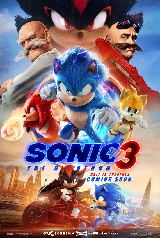 11月19日,世嘉经典游戏改编电影《刺猬索尼克3》(Sonic the Hedgehog 3)发布新海报,除了索尼克、纳克鲁斯、塔尔斯和“蛋头博士”艾沃·罗伯尼克现身,还有新对手“暗影”夏特和蛋头博士的爷爷科学家杰拉德·罗伯尼克也一同亮相。