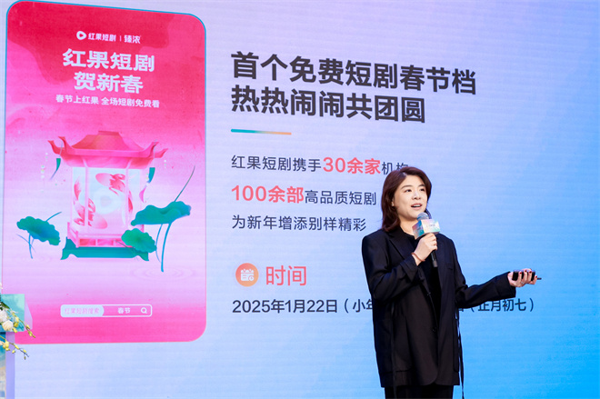春节在即,会上红果短剧还官宣了2025春节档活动,涵盖红色、现实、古装、言情等多个内容方向的精彩好剧将会在今年春节假期与观众见面。红果短剧运营负责人隋奕菲表示,看短剧已成为很多人假期生活休闲放松的新选择,此次红果携手华策、柠萌等30余家专业机构,打造首个免费春节档,希望为用户春节生活添加别样精彩。除特色好剧外,红果短剧还将独家上线综艺《出发吧短剧!》。