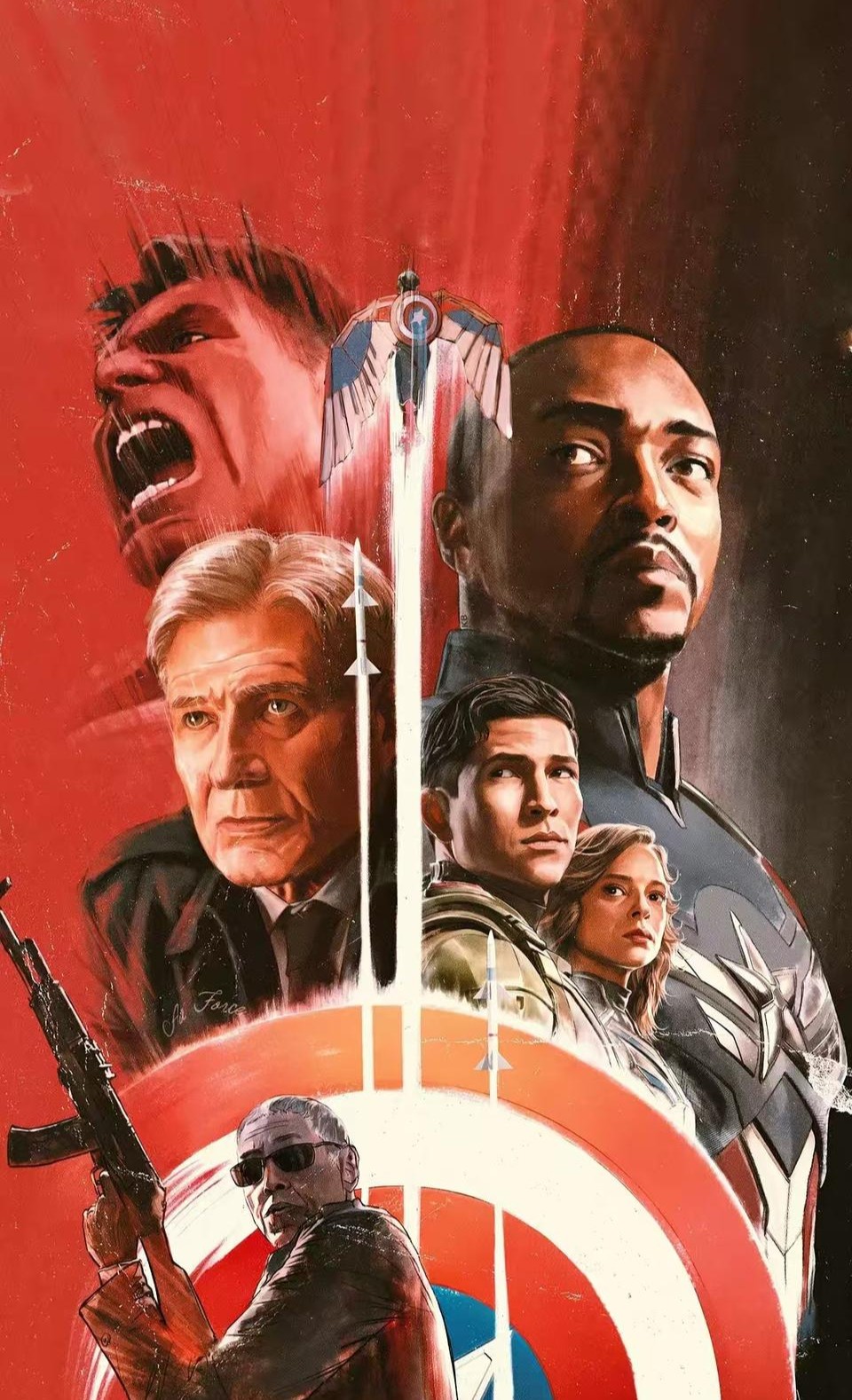 红浩克暴走白宫的视觉奇观,仍旧是“反派失控 英雄救世”的陈旧模板;新任美队的身份焦虑,也沦为口号式的人物弧光,超级英雄电影已从造梦艺术沦为IP周边宣传片。创作力的严重衰退,或已成为好莱坞工业化生产的症结所在。