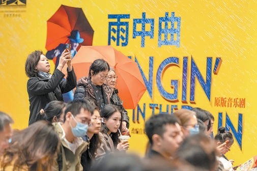 北京艺术中心里,观看音乐剧《雨中曲》的观众络绎不绝。 龚雪东摄