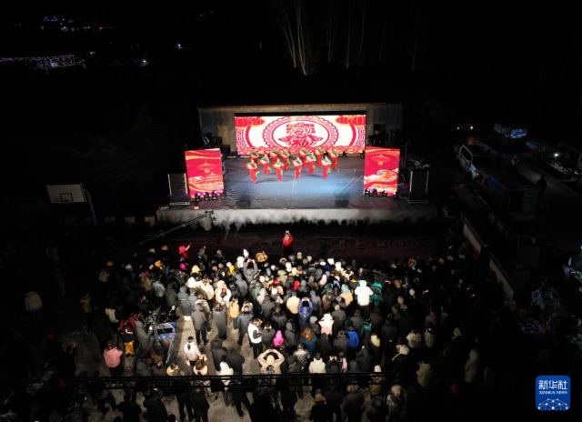 在辽宁省朝阳市朝阳县北四家子乡唐杖子村,“村晚”联欢开场(2月2日摄,无人机照片)。