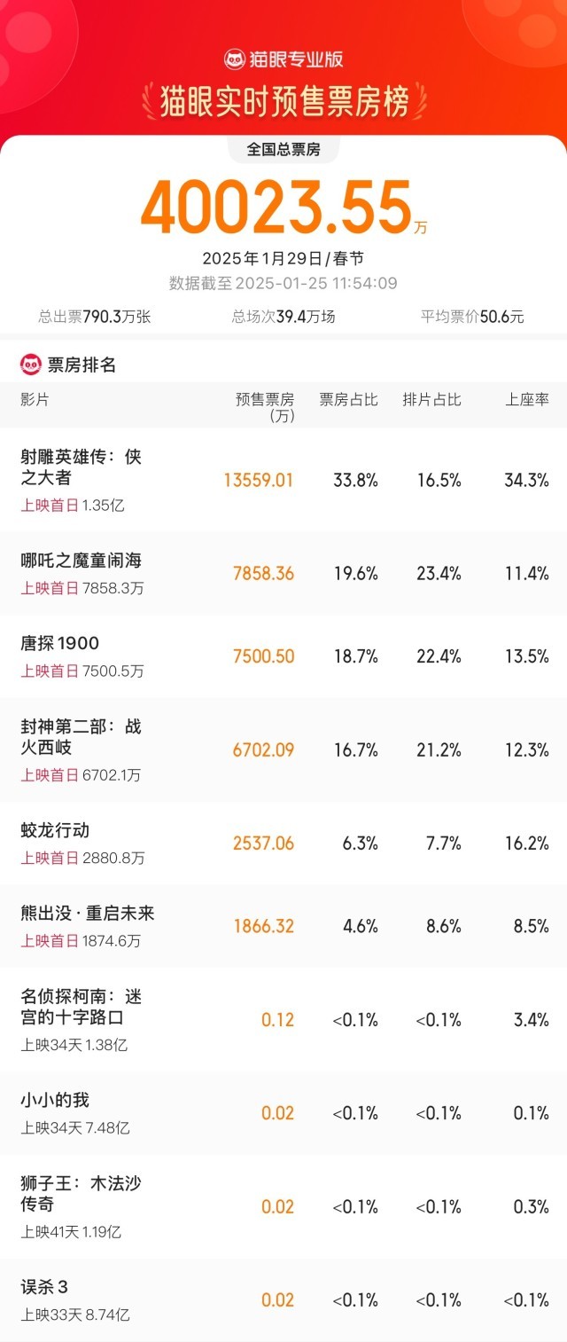 2025年大年初一预售票房破4亿
