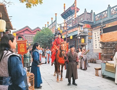 此时,大批涌向横店的微短剧剧组为华夏文化园提供了转型思路:将古今景观融合,打造更适合微短剧取景的影视片场。2023年底,改造完成后的华夏文化园向微短剧剧组开放。