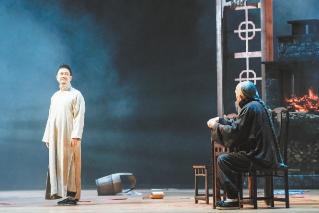 “原来的演出,我把重点放在塑造卢孟实运筹帷幄的个性上,当时的布景也是两层楼,我常常站在楼上看着。”谢君豪说,这次复排布景有所变化,上下的楼梯在舞台上仅做意象化的呈现,用两块略高于地面的木板放在舞台两侧,“‘落地’这个词对卢孟实、对我出演卢孟实都非常重要。”谢君豪说,这一次,卢孟实从楼上走了下来,跟福聚德的所有同仁一起干活、努力。