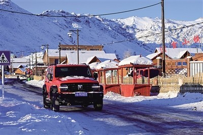 游客自驾来到新疆阿勒泰地区富蕴县可可托海镇塔拉特村。丁磊 摄