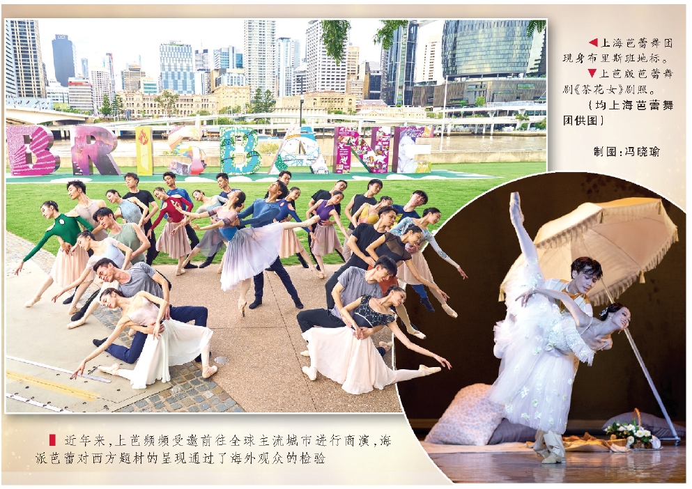 上海芭蕾舞团现身布里斯班地标。 上芭版芭蕾舞剧《茶花女》剧照。 (均上海芭蕾舞团供图) 制图:冯晓瑜