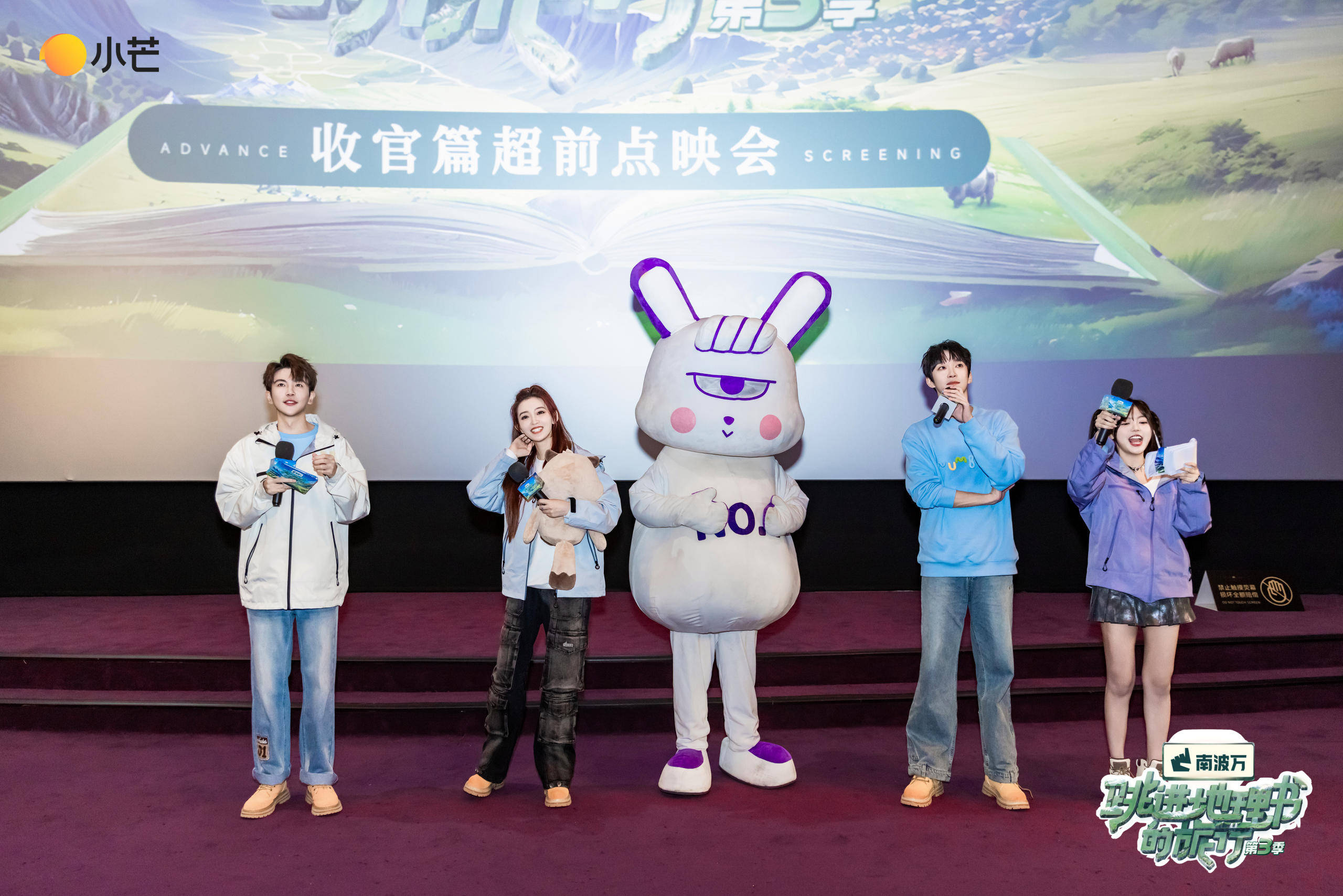 9月22日,《跳进地理书的旅行》第三季在长沙IFS国金中心英皇影城举办收官篇超前点映会。节目组提前放送收官正片,与多家媒体、节目粉丝一同观赏。节目嘉宾罗予彤、曹恩齐全程陪伴观影,直面媒体提问,除了分享旅途心得和感悟外,两人还对下一季节目录制地给出了自己的建议,引发在场粉丝期待。此外,罗予彤、曹恩齐更在点映会现场与粉丝亲密互动,再现“双押游戏”“剪刀石头布”等节目中多个游戏名场面,全程气氛热烈,高潮迭起。