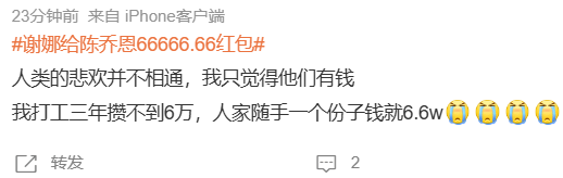 挺震惊的,但估计谢娜也不是给谁都这么多。