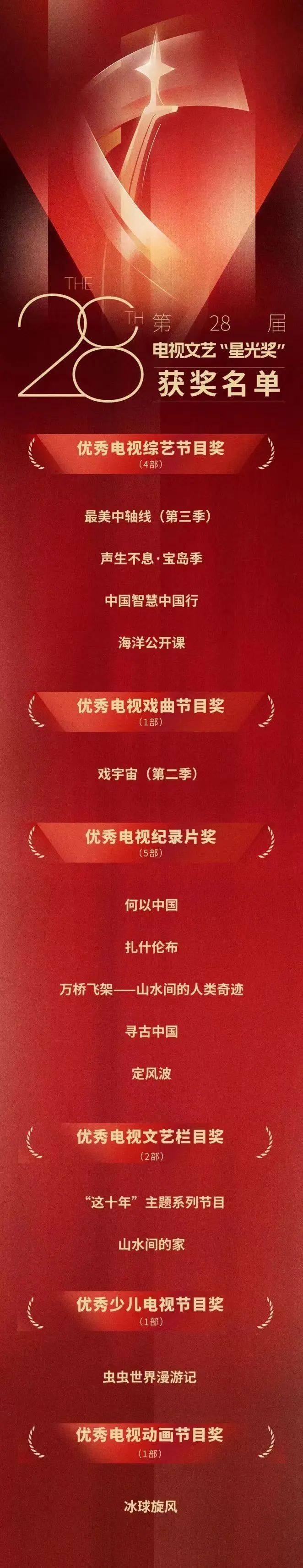 9月21日晚,第28届“星光奖”揭晓。江苏省广播电视总台电视综艺节目《中国智慧中国行》获得第28届“星光奖”优秀电视综艺节目奖。