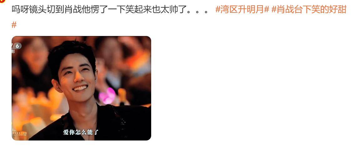 镜头从台上突然给到肖战的时候,他也扛住了“偷袭”,冲着镜头笑得开心。配上台上唱到的歌词“为何你还来拨动我心跳”,狠狠被甜到!
