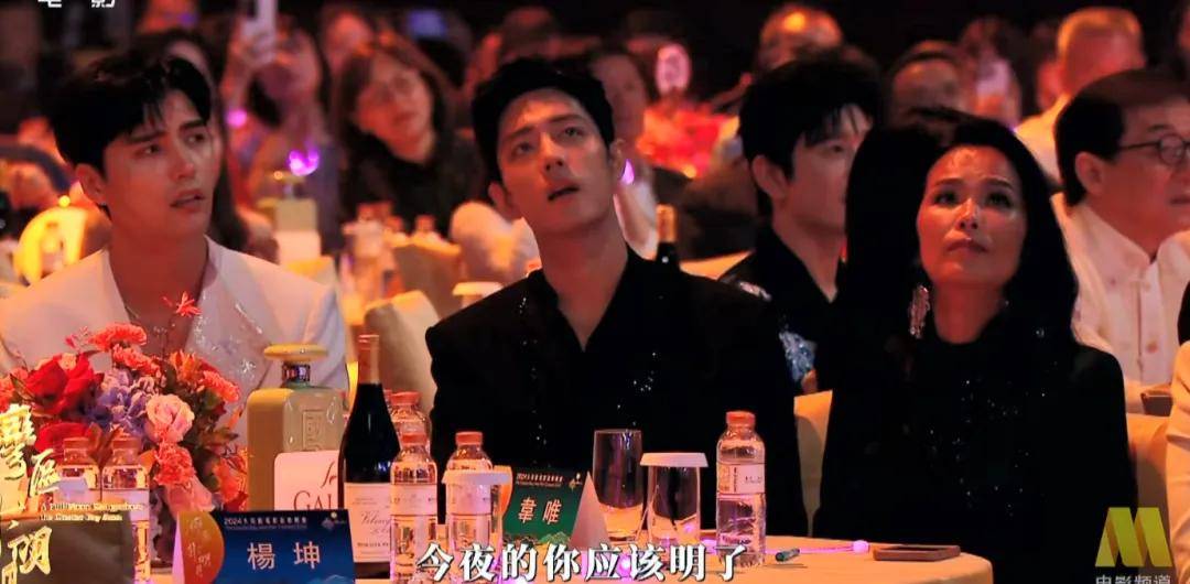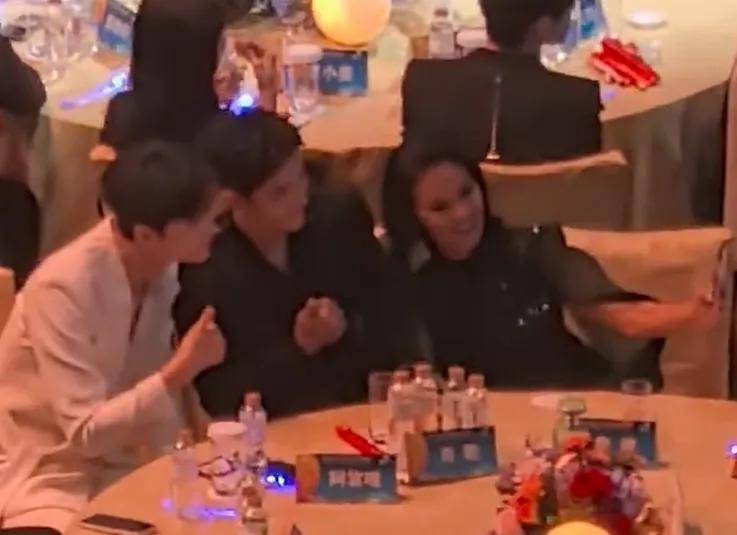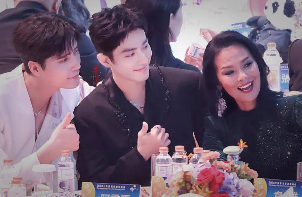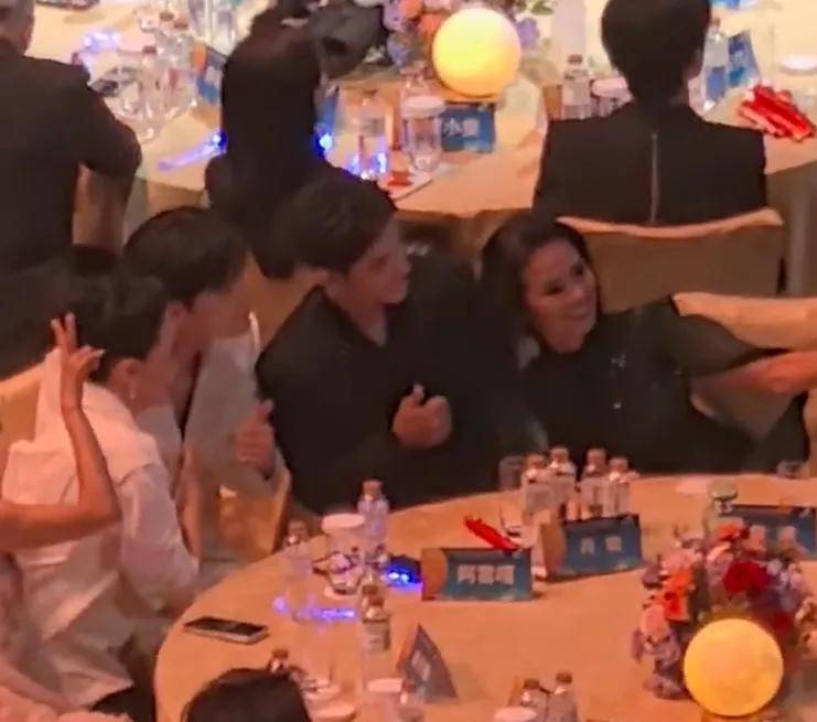 肖战坐在阿云嘎和韦唯中间,一直在和他们聊天,韦唯还叫肖战和阿云嘎一起看镜头拍合照,后来一桌人还拍了一个大合照,状态非常松弛